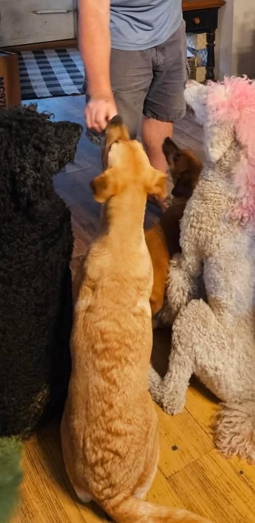 She plays well with other dogs and is being fostered with chickens, cats, and all kinds of other critters without any issues.