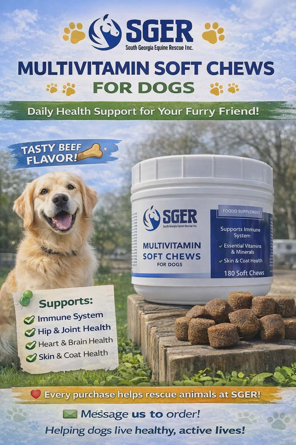 Your dog requires a balanced diet to meet its daily nutritional needs. The Multivitamin Soft Chews are expertly crafted with a rich combination of vitamins, minerals, and antioxidants,all presentednutritional support for the immune system,promoting your pet's overall health.