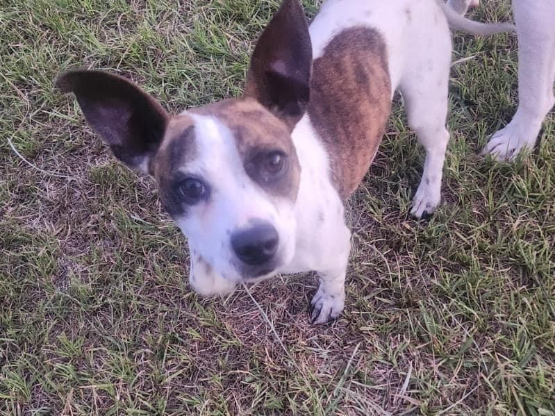 Sawyer went from a scared boy to one of the most loving and outgoing dogs at the rescue. He loves to meet new people, he's getting used to being picked up, and loves to plays with the other dogs and puppies at the rescue. He greets volunteers when they come help out at the rescue and seeks attention from others. He has a strong fear of leashes and we think someone was not so nice to him with a leash. so we are slowly working on introducing him to one in hopes he will become leash trained and lose that fear. He is kennel and house trained, has been introduced to cats, and has really turned out to be an amazing boy. We only recommend children over 5 because he does like to jump when he's excited to see you. If you're interested in this pint sized little guy that loves attention and is playful, Sawyer is your guy!